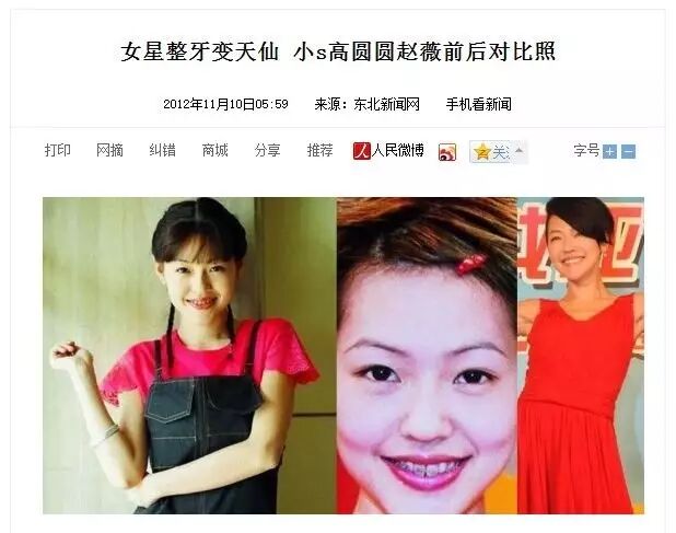 首先,部分媒体为了炒作 用的对比图是小s戴钢牙的图片和矫正后的图片
