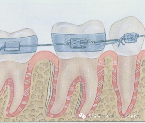 持续的施力导致牙齿所移动方向上的骨质吸收,随着牙齿的漂移,其所包绕的韧带也开始发生牵拉。
