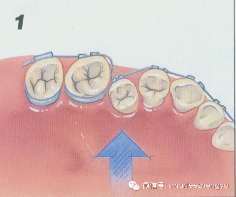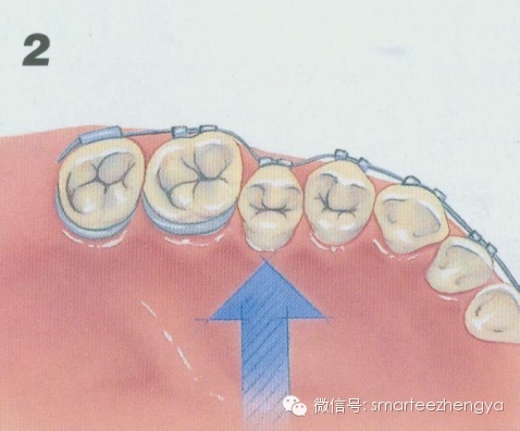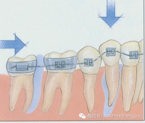 弹性弓丝施加的压力,就像是火车头一样沿着轨迹来引导牙齿的移动。