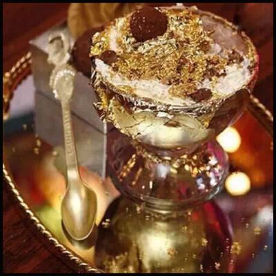 最奢侈的冰淇淋莫过于纽约Serendipity3饭店提供的冰淇淋。25种可可制成的奶油冰淇淋,表面摆上绒毛状凝乳,LaMadeline au Truffle小块巧克力,并将其装在精制的金边碗中,再配上镶有钻石的小匙,一份这样的冰淇淋价值2.5万美元。