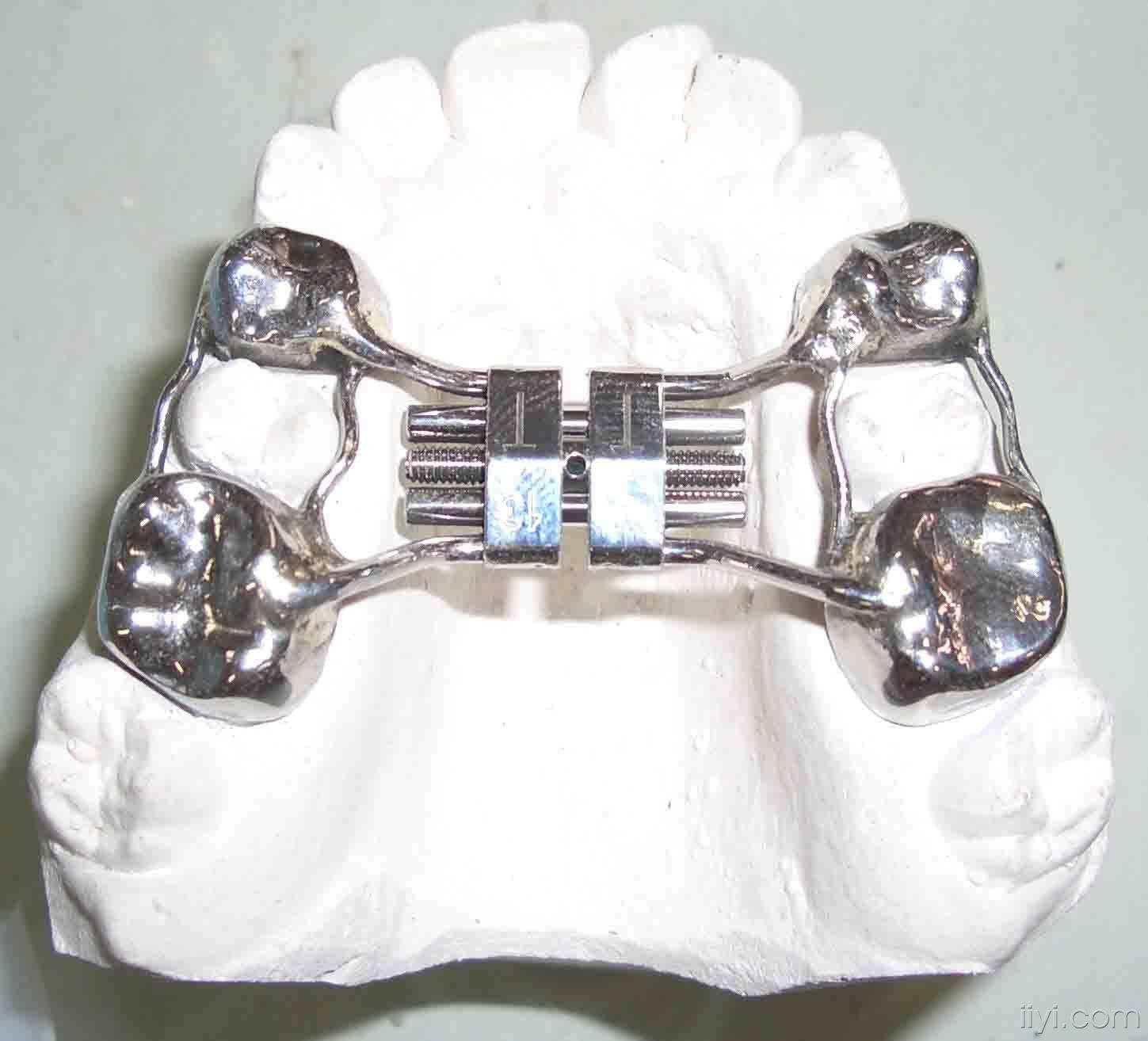 我是因为牙齿有些拥挤,所以医生让我戴扩弓器,用来扩大牙弓。类似图片中这样的,戴在上颚位置,挺不舒服的,吃东西容易塞,而且说话口齿不清。